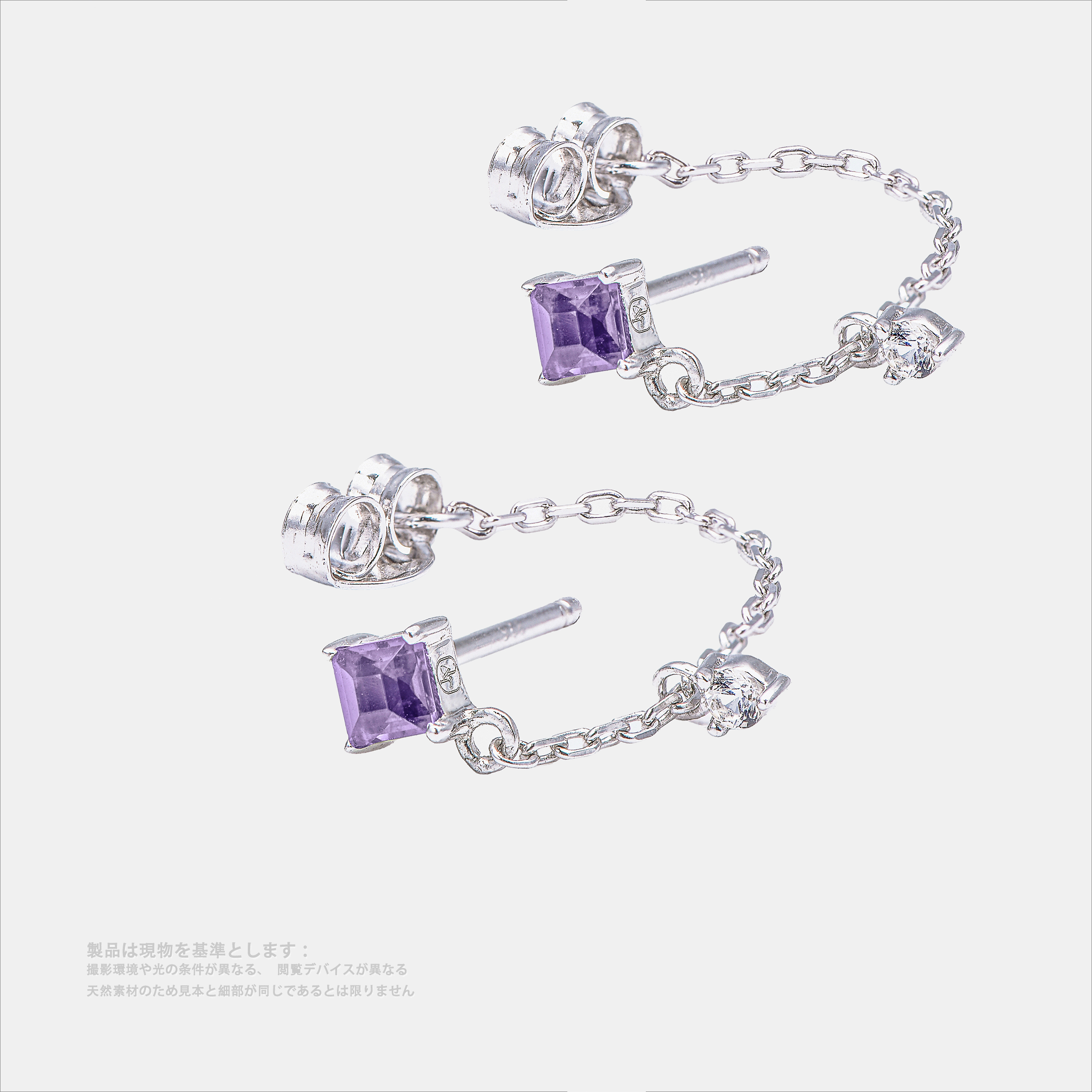 S925銀 約28mm 四角形紫金石 3×3mm 円形白宝石 2mm