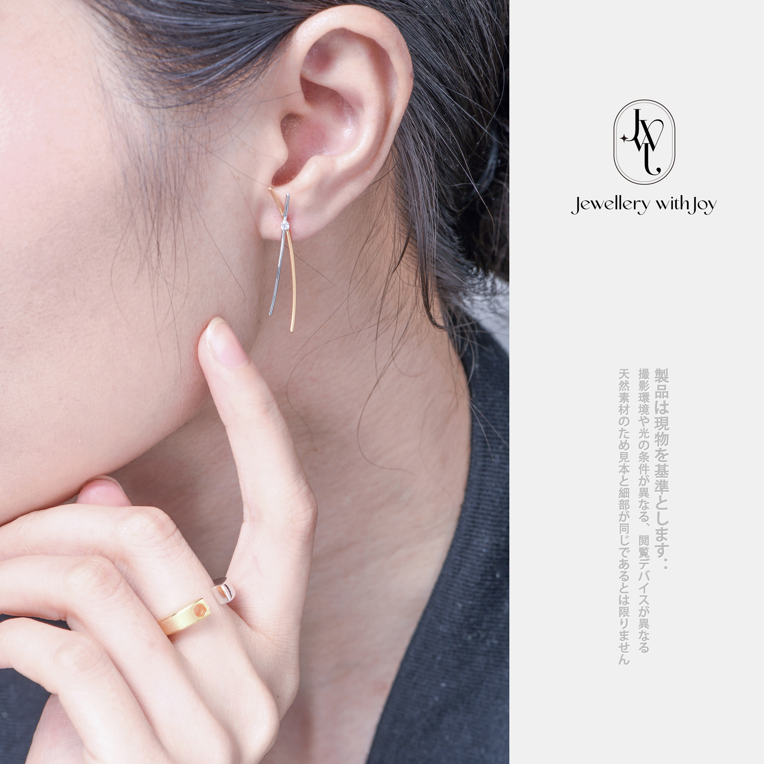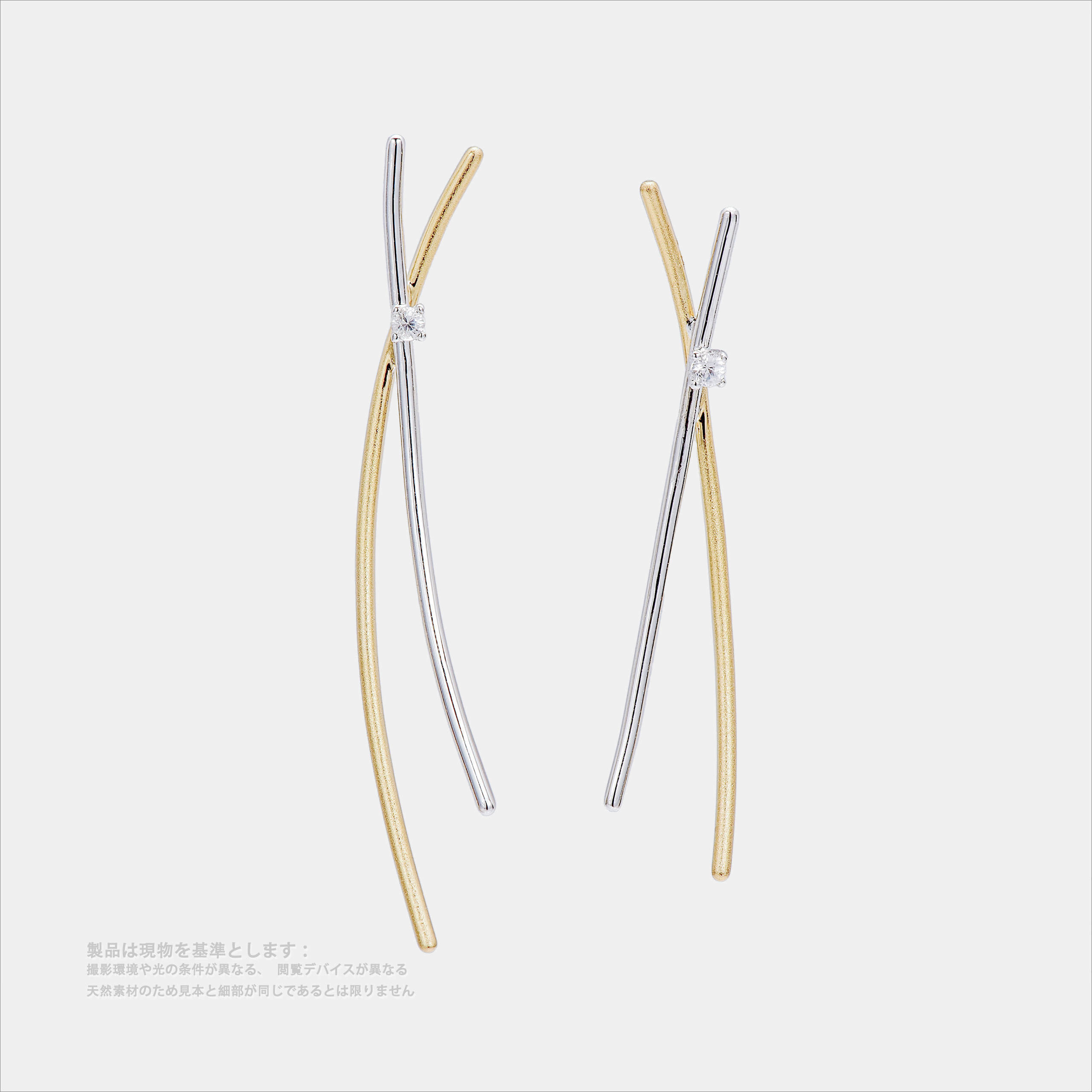 シルバーゴールド色 シルバー 925 ゴールドメッキ 両側非対称 最長:约4.5cm 最短:约3.5cm 円形白宝石1.6mm
