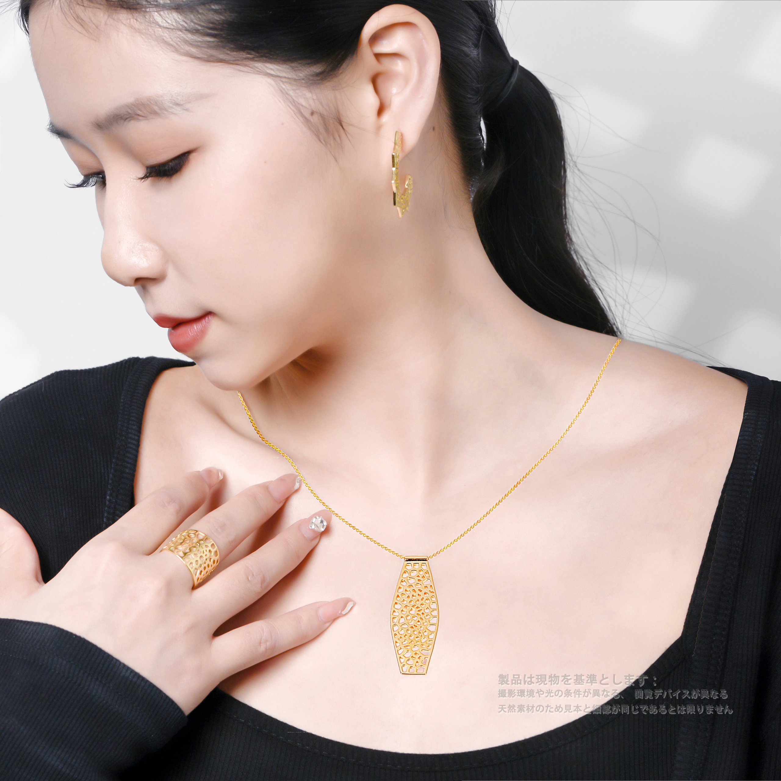 影の彫り 隙間の光 オリジナルデザイン ゴールド色・金メッキ・長サイズネックレス個