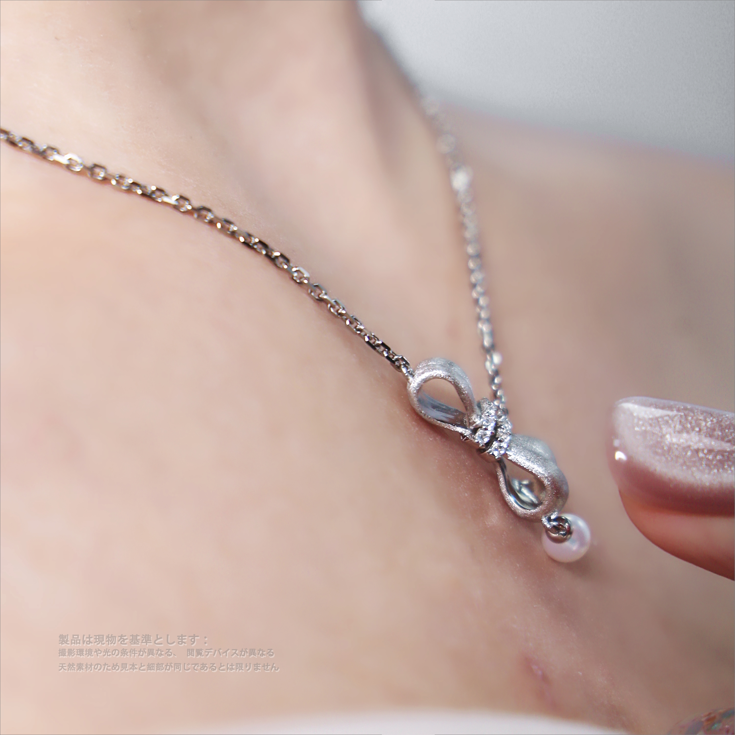 S925銀・淡水真珠・ジルコン・ブラッシュ加工 ネックレス長さ:約 40cm メイン淡水真珠:約 4.5mm ペンダントサイズ:約 18.3mm×8.3mm×5.5mm